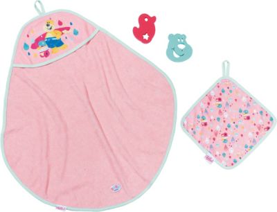 Der top aktuelle waffelpique stoff ist wunderbar weich und die kapuze schützt baby born s nasses köpfchen vor zugluft. Lustige regentropfen und ente berta mit badekappe verzieren die vorderseite des rosa farbenen teilchens br br. Baby born kommt ganz lässig in ausgefranzter short in jeans optik mit pinker leggings.