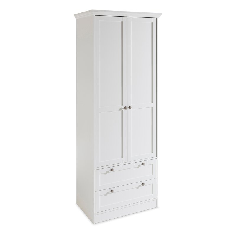 Kleiderschrank Landwood Schrank In Weiss Mit 2 Schubkasten Landhausstil