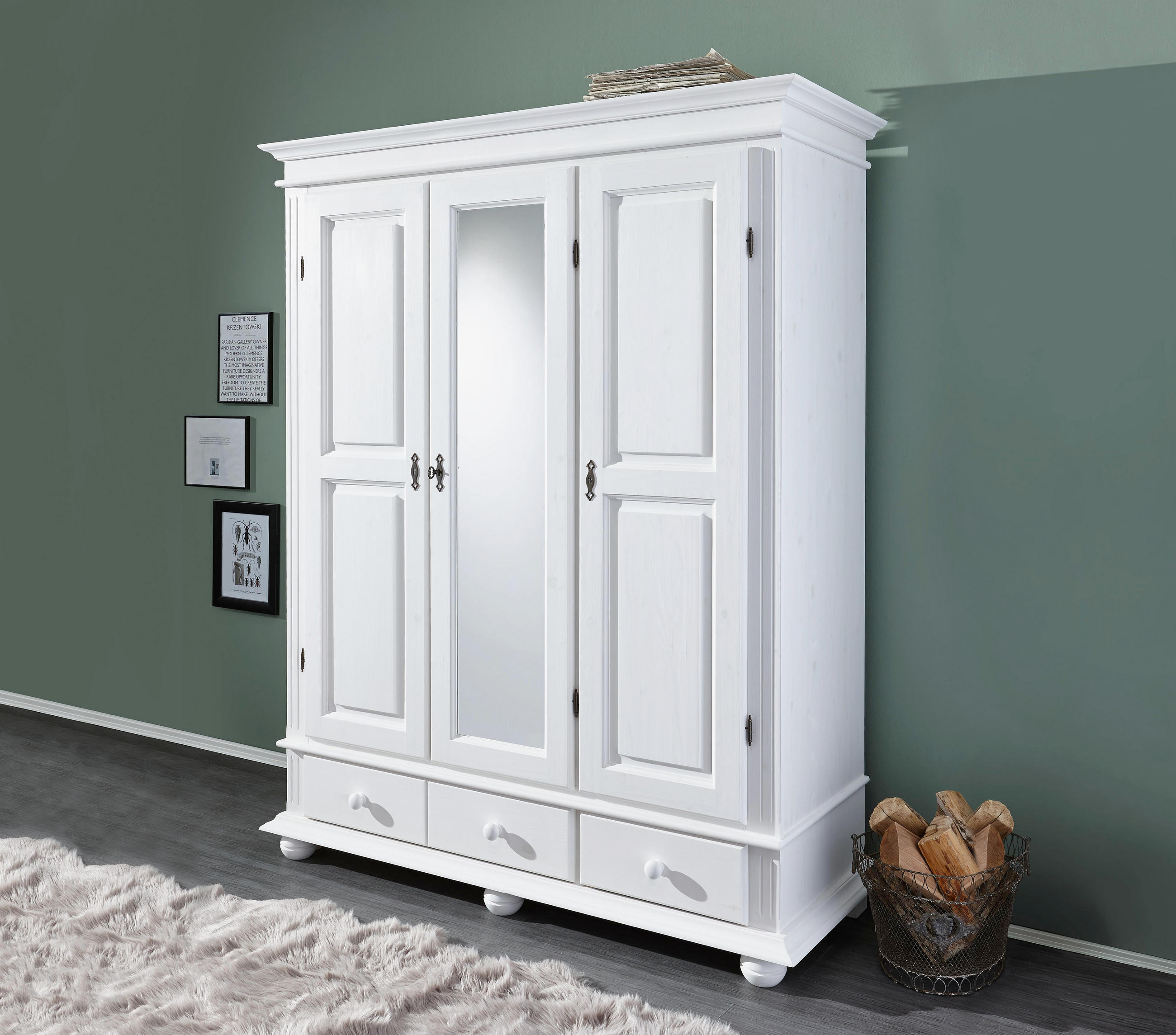 Kleiderschrank Puro Gross 3 Turig Fichte Massiv Weiss Lasiert