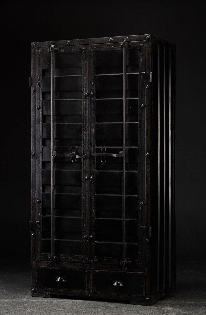 Schrank Aus Schwarz Bemaltem Metall Rustikaler Container Look