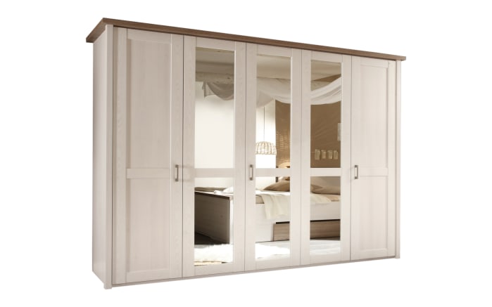 Kleiderschrank Laguna 5 Turig Pinie Weiss Braun Mit Spiegel 1 969