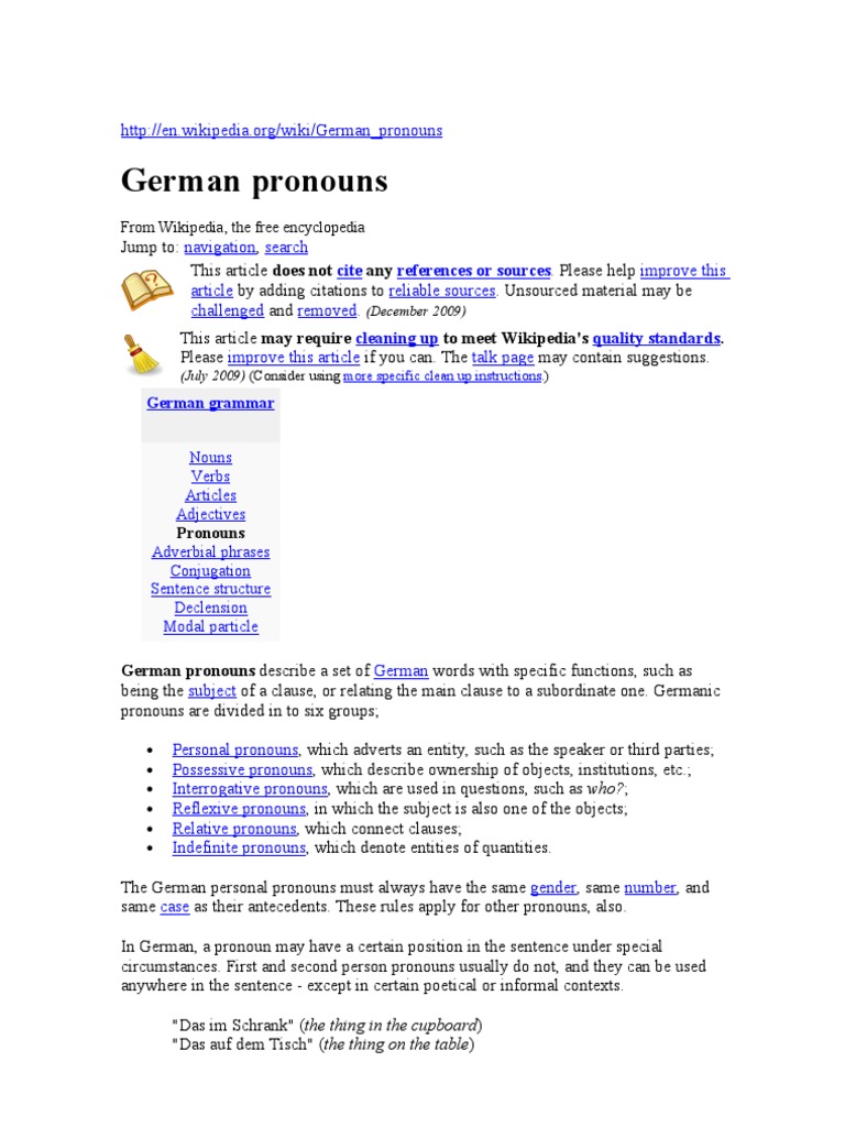 German Pronouns Pronoun Grammatical Gender