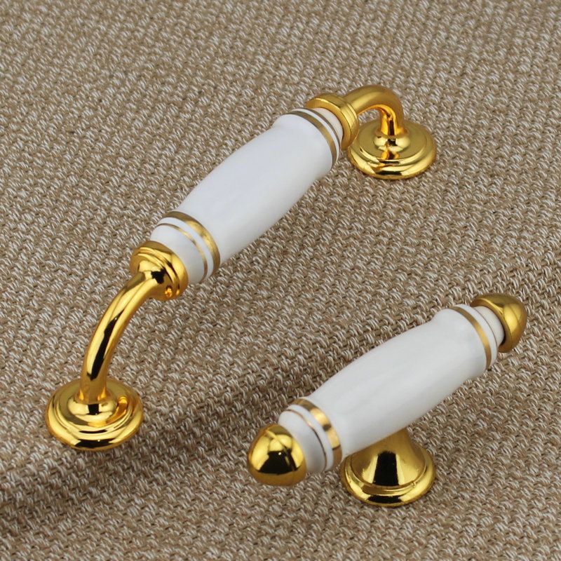 Grosshandel 96mm 24 Karat Gold Schubladenschrank Zieht Knopfe Weisse