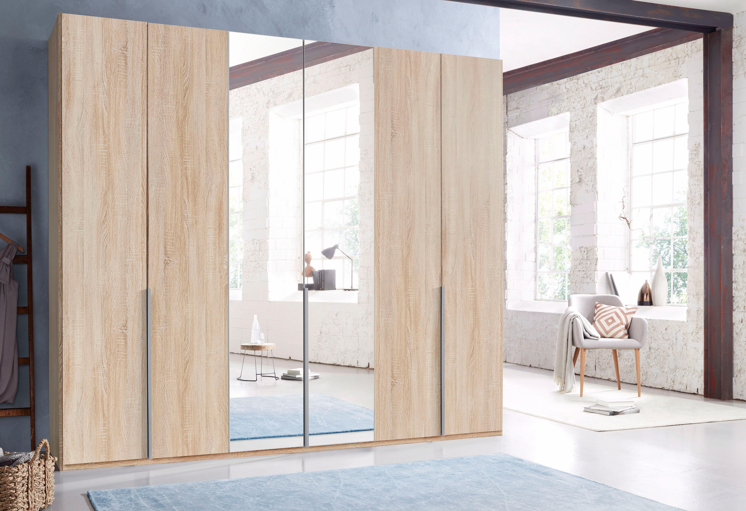 Wimex Kleiderschrank Seattle 270cm Hickory Oak Weiss Spiegel